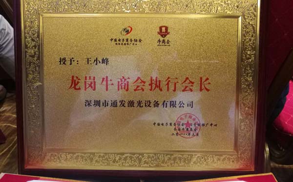 深圳市龍崗牛商會(huì)執(zhí)行會(huì)長(zhǎng),深圳市通發(fā)激光設(shè)備有限公司副董事長(zhǎng)王小峰從深圳上千企業(yè)家中脫穎而出,同其他九位優(yōu)秀企業(yè)家共同獲得了第九屆深圳十大牛商的殊榮。