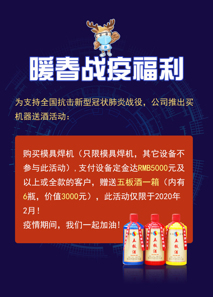 新型冠狀肺炎戰(zhàn)役福利——買通發(fā)激光模具焊接機送五板酒