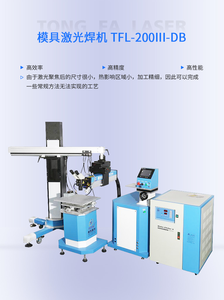 TFL-200Ⅲ-DB型模具激光焊機(jī)是通發(fā)激光公司在TFL-180Ⅲ的基礎(chǔ)進(jìn)行了改良,采用通發(fā)自主研發(fā)的二代精密單燈電源為燈泵浦驅(qū)動(dòng)電源,操作更方便。主機(jī)具備激光頭手搖升降與工作臺(tái)按鈕電動(dòng)升降實(shí)現(xiàn)焊接不同厚度模具的激光焊加工。本款機(jī)型更適用于各類(lèi)高精密注塑模具激光補(bǔ)焊,精密塑膠模具零件激光修補(bǔ),塑膠模具鈹銅零件激光燒焊;可對(duì)模具使用過(guò)程中出現(xiàn)的磨損進(jìn)行激光修復(fù);對(duì)機(jī)械加工失誤、電火花加工失誤,模具減膠設(shè)計(jì)變更等需要對(duì)模具修改,起到關(guān)鍵的作用,可彌補(bǔ)應(yīng)加工失誤造成的巨大損失。