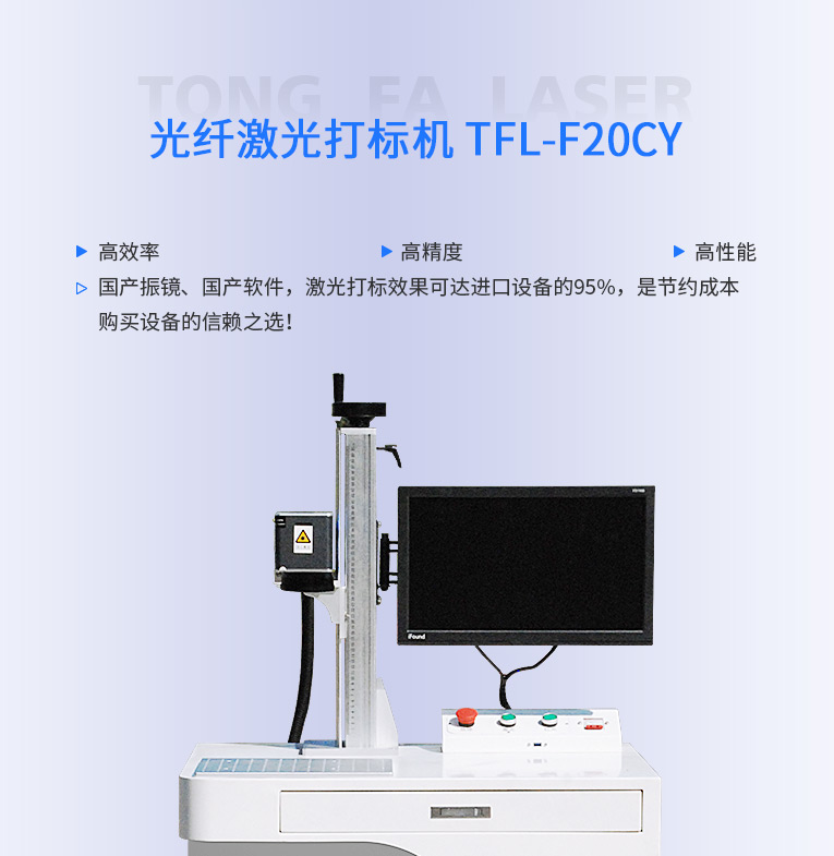 通發(fā)激光研發(fā)TFL-F20CY激光打標(biāo)機(jī),金屬材料和塑膠材料都進(jìn)行打標(biāo)加工,本激光鐳雕機(jī)配置成熟的20W和30W國產(chǎn)光纖激光器,國產(chǎn)振鏡、國產(chǎn)軟件,性價比高,激光打標(biāo)效果可達(dá)進(jìn)口設(shè)備的95%,是節(jié)約成本購買設(shè)備的信賴之選!